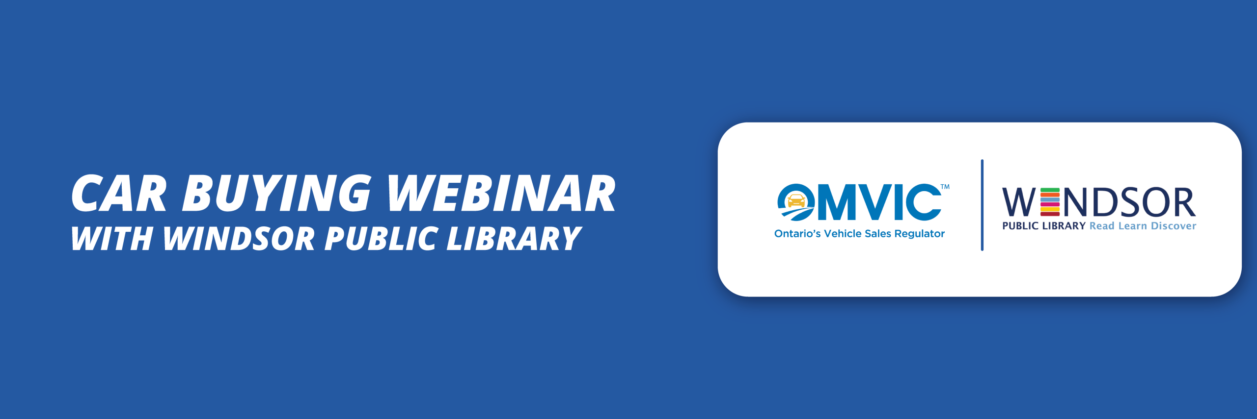 Join us for a virtual webinar presented by the Ontario Motor Vehicle Industry Council (OMVIC) the regulator of motor vehicle sales in Ontario in partnership with Stouffville Library. Buying a vehicle can be an challenging experience with long-term financial implications. A representative from the Ontario Motor Vehicle Industry Council (OMVIC) will provide you resources and...