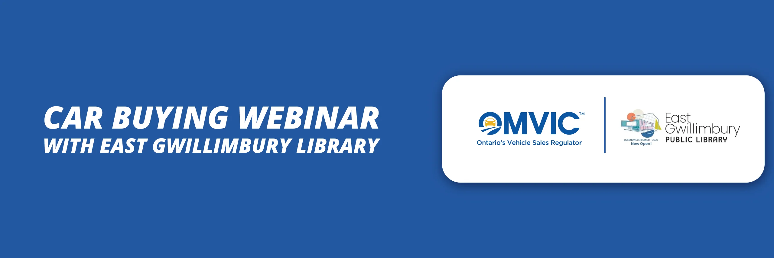 Join us for a virtual webinar presented by the Ontario Motor Vehicle Industry Council (OMVIC) the regulator of motor vehicle sales in Ontario in partnership with East Gwillimbury Public Library....
